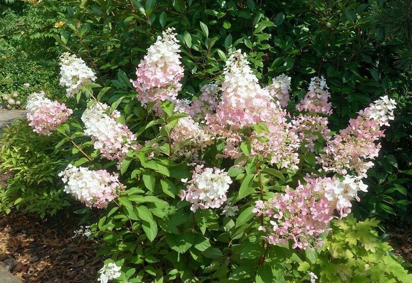 1. Декоративность: Гортензия Конфетти радует глаз своими крупными соцветиями, которые меняют цвет в течение сезона — от белого до розового и даже красноватого оттенка.