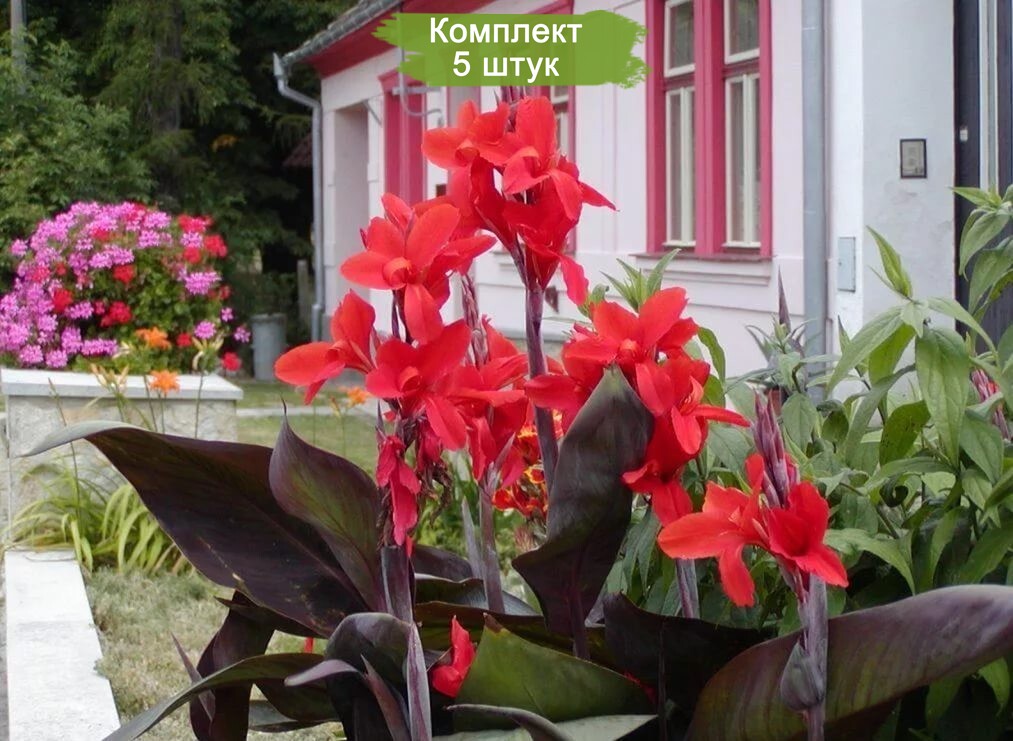 Канна "Америка" станет ярким украшением вашего сада, привлекая внимание своими крупными цветками и декоративными листьями.