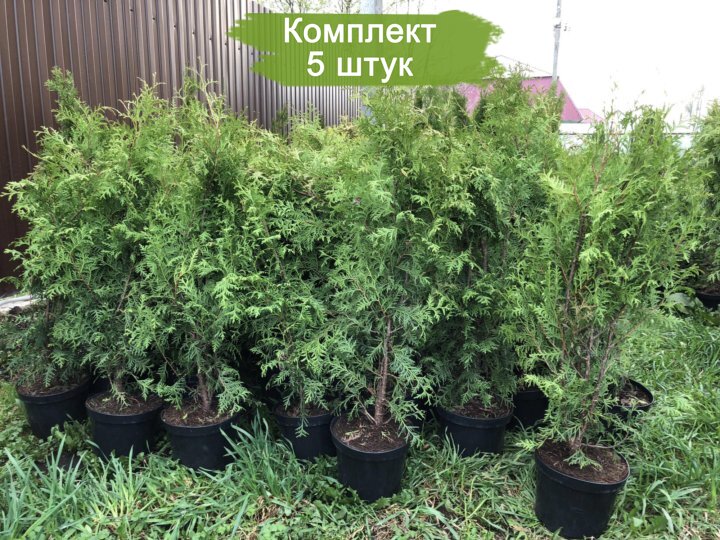 Комплект из пяти туй сорта "Брабант" размером от 60 до 100 см предлагается по привлекательной цене — пять растений по стоимости четырех. Туя западная (Thuja occidentalis) пользуется популярностью среди садоводов за свои выдающиеся темпы роста, сопоставимые лишь с лиственницей. Взрослое дерево может достигать в высоту до 20 метров, а ширина его кроны может быть до четырех метров. Однако в условиях России чаще всего встречаются экземпляры высотой 4–5 метров.