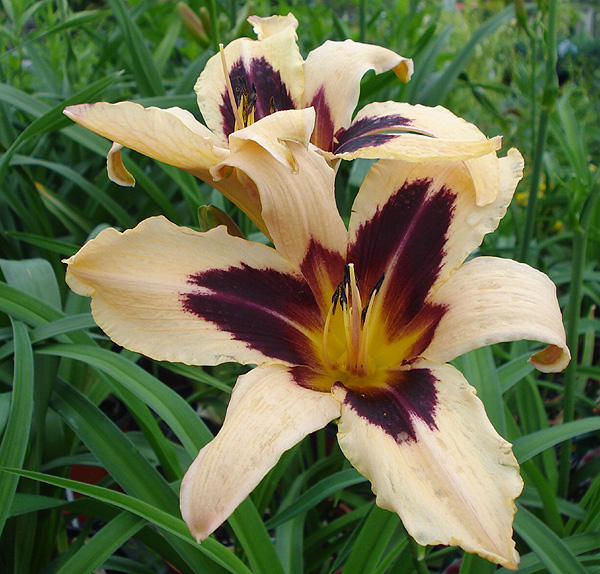 Лилейник Wild Horses (Вайлд Хосес) - это изысканный сорт, который привлекает внимание своими крупными цветками светло-бежевого цвета с яркими пурпурными акцентами. Этот сорт был выведен в 1999 году оригинатором Trimmer и с тех пор завоевал популярность среди садоводов благодаря своей высокой морозостойкости и раннему сроку цветения.